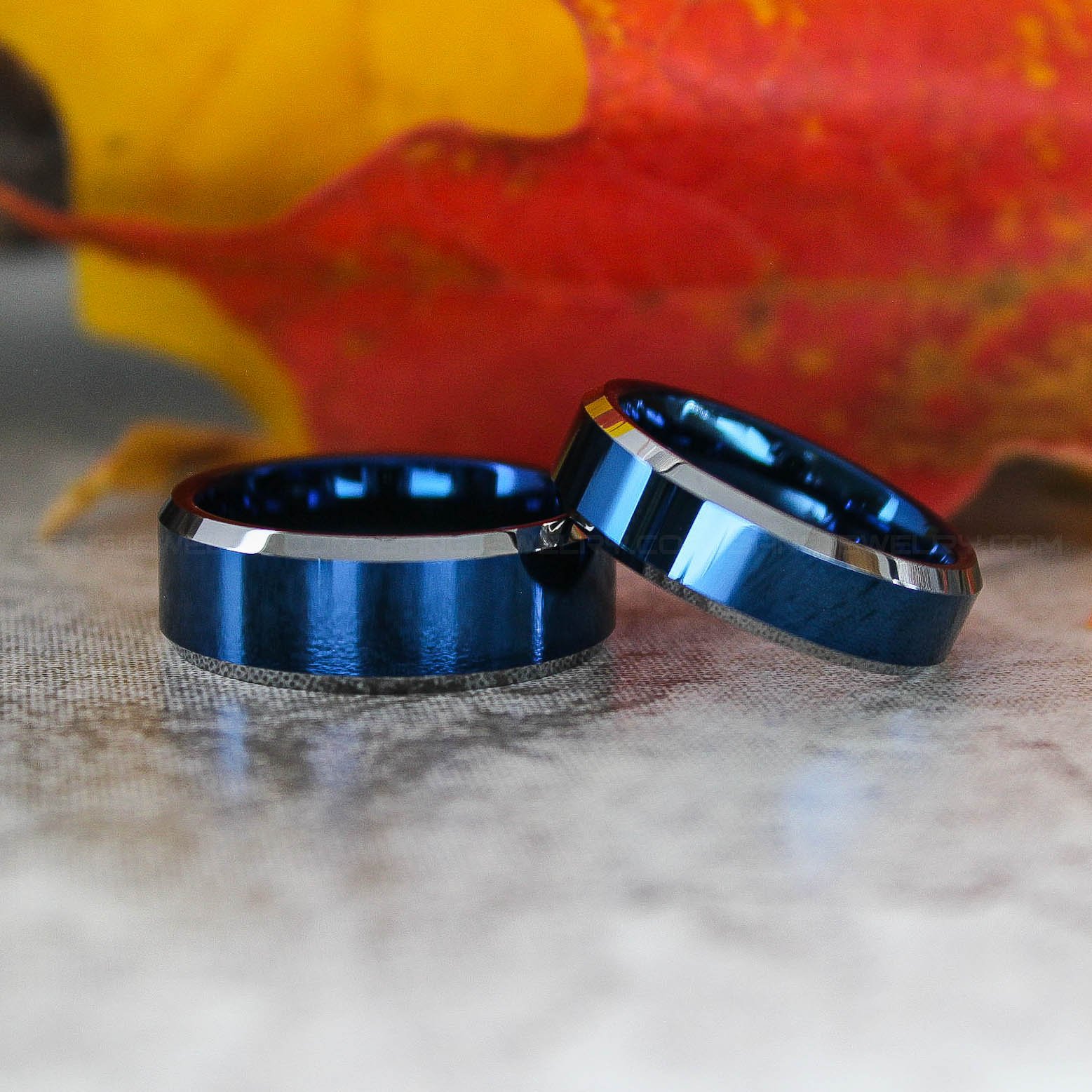 8MM BLUE TUNGSTEN BAND WITH BEVELED EDGE