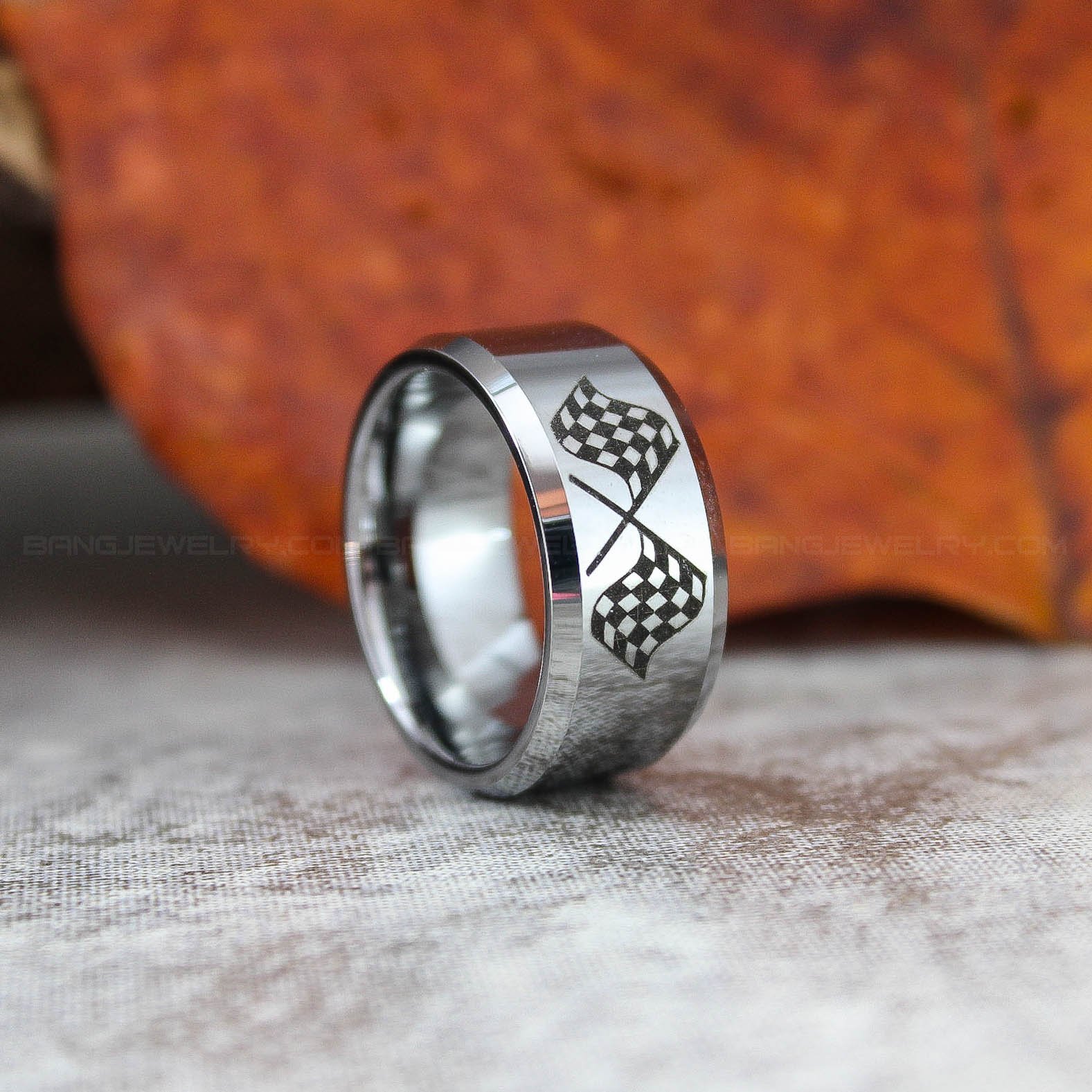 Checkered Flag Ring, Racing Ring, Checkered Flag Wedding Band, Racing Flag Ring