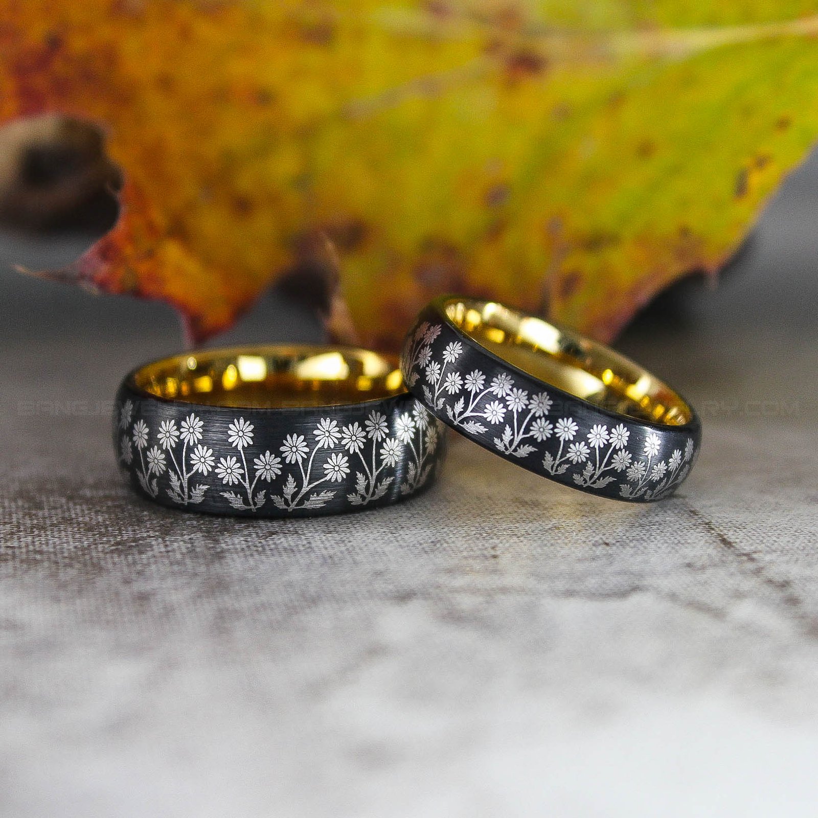 Daisy Rings, Flower Rings, Daisy Wedding Bands, Daisy Wedding Rings, Black Wedding Bands