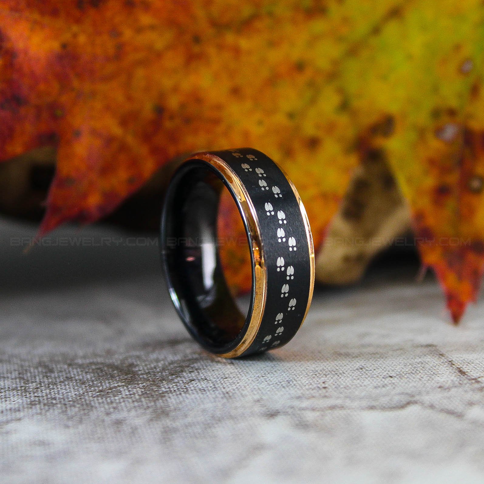 Deer Hunting Ring, Deer Tracks Wedding, Deer Hunting Jewelry, Black Tungsten Ring, Black Wedding Band, Hunting Jewelry, Deer Tracks Wedding Ring, Deer Tracks Ring
