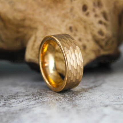 8MM BLACK TUNGSTEN BAND WITH HAMMERED FINISH ROSE GOLD GROOVE