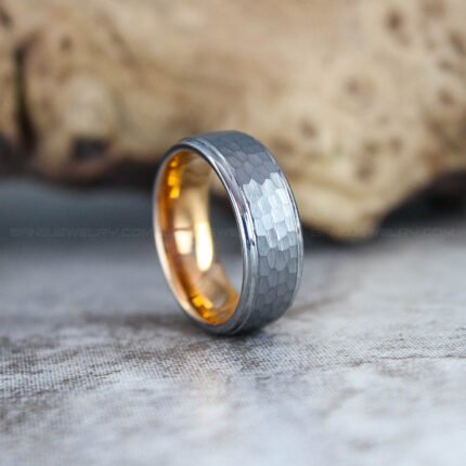 8MM SILVER TUNGSTEN BAND WITH HAMMERED FINISH