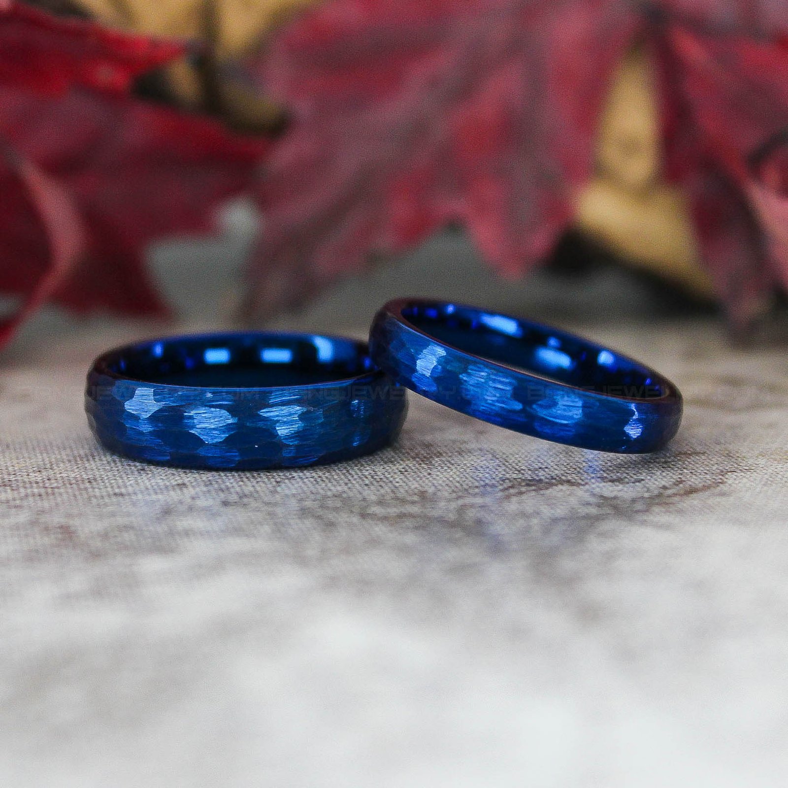 Hammered Wedding Bands, Hammered Rings, Hammered Wedding Rings, Blue Tungsten Bands