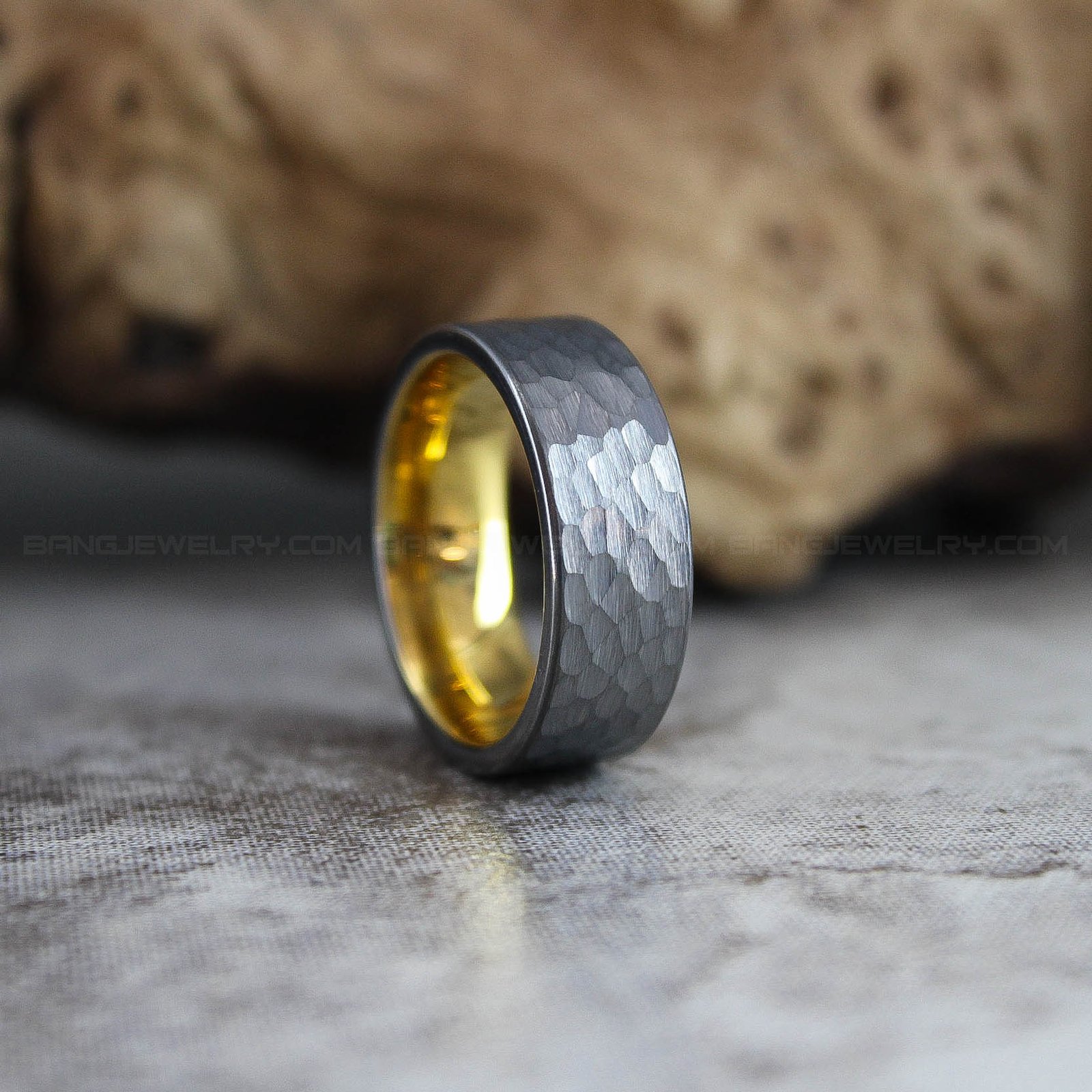 8MM SILVER TUNGSTEN BAND WITH HAMMERED FINISH