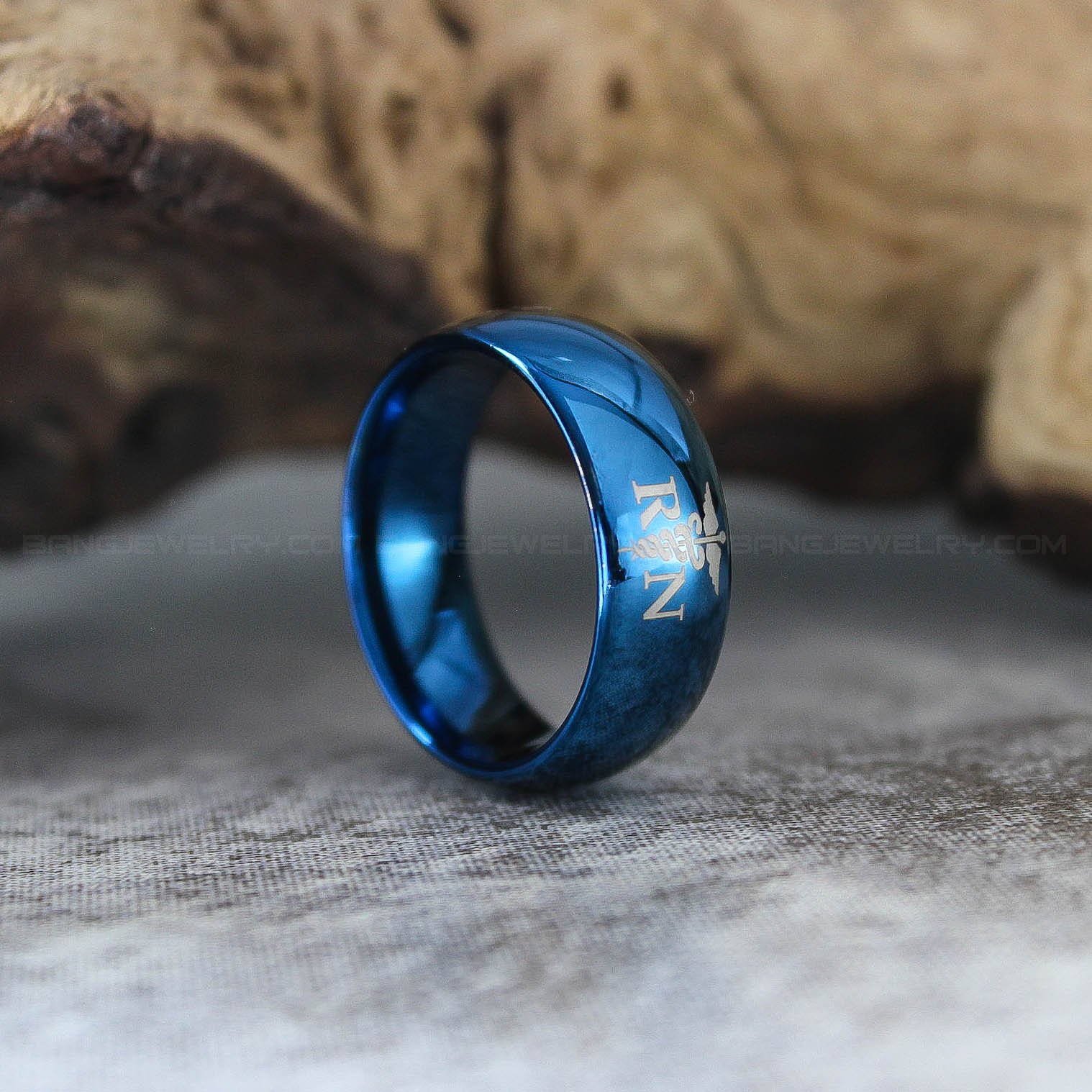 Nurse Ring, Registered Nurse Ring, 8mm Blue Tungsten Wedding Band, RN Registered Nurse Ring, 8mm Blue Tungsten Wedding Ring