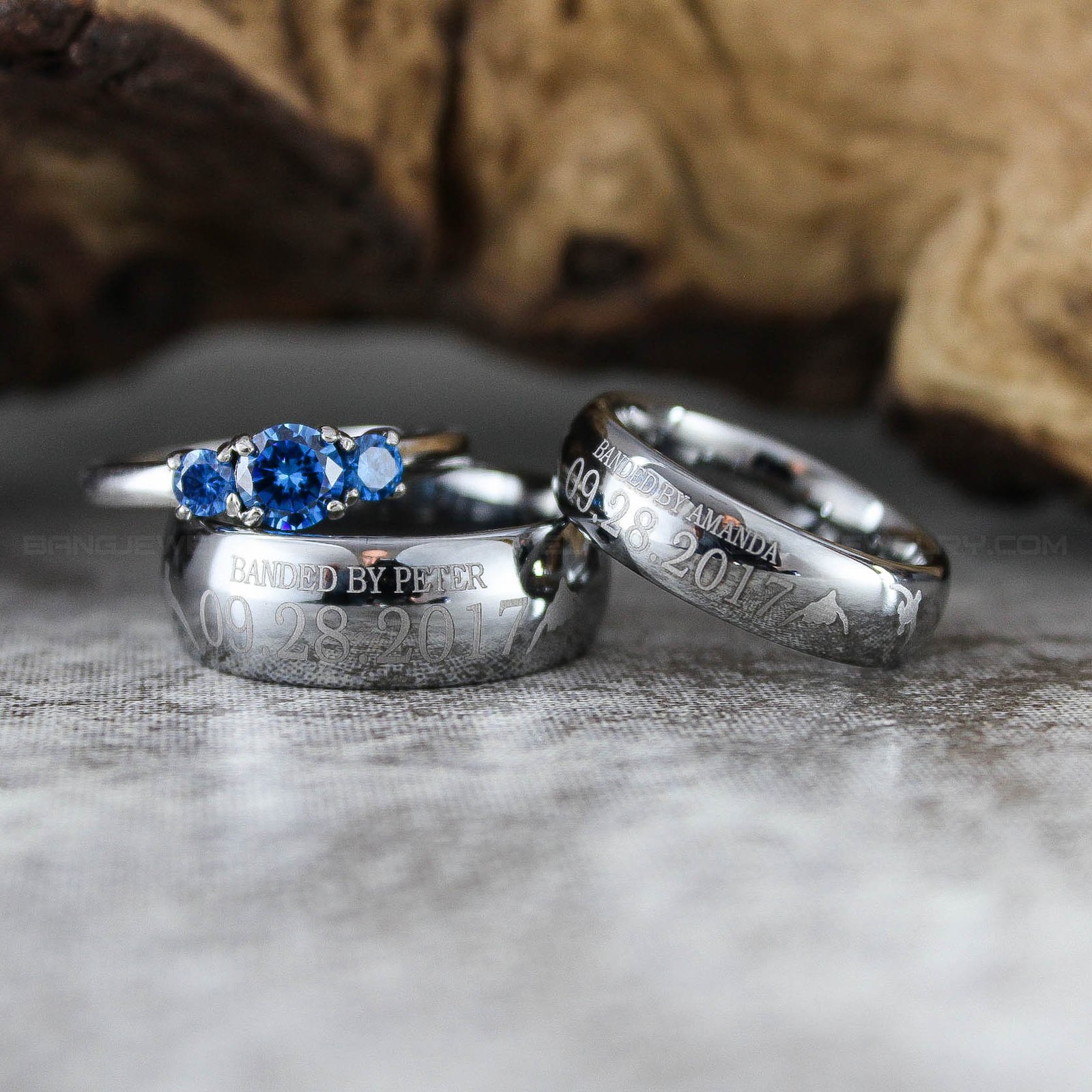 Personalized Banded Together Rings, Matching Couple Wedding Bands, Couple Wedding Rings
