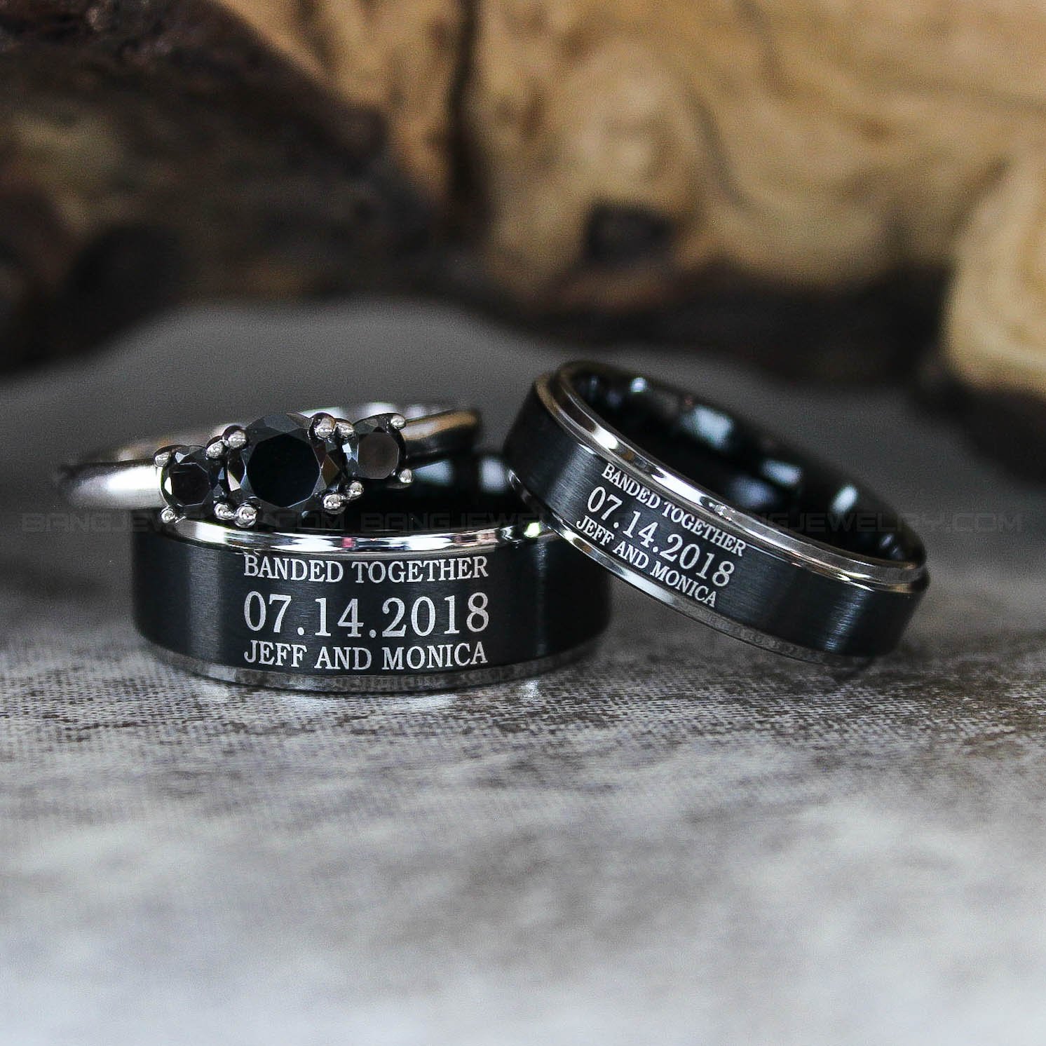 Personalized Banded Together Rings, Matching Couple Wedding Bands, Couple Wedding Rings