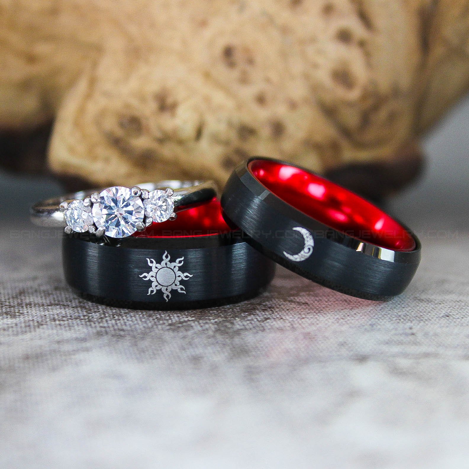 Sun and Moon Rings, Sun and Moon Wedding Bands, Sun and Moon Jewelry, Couple Rings