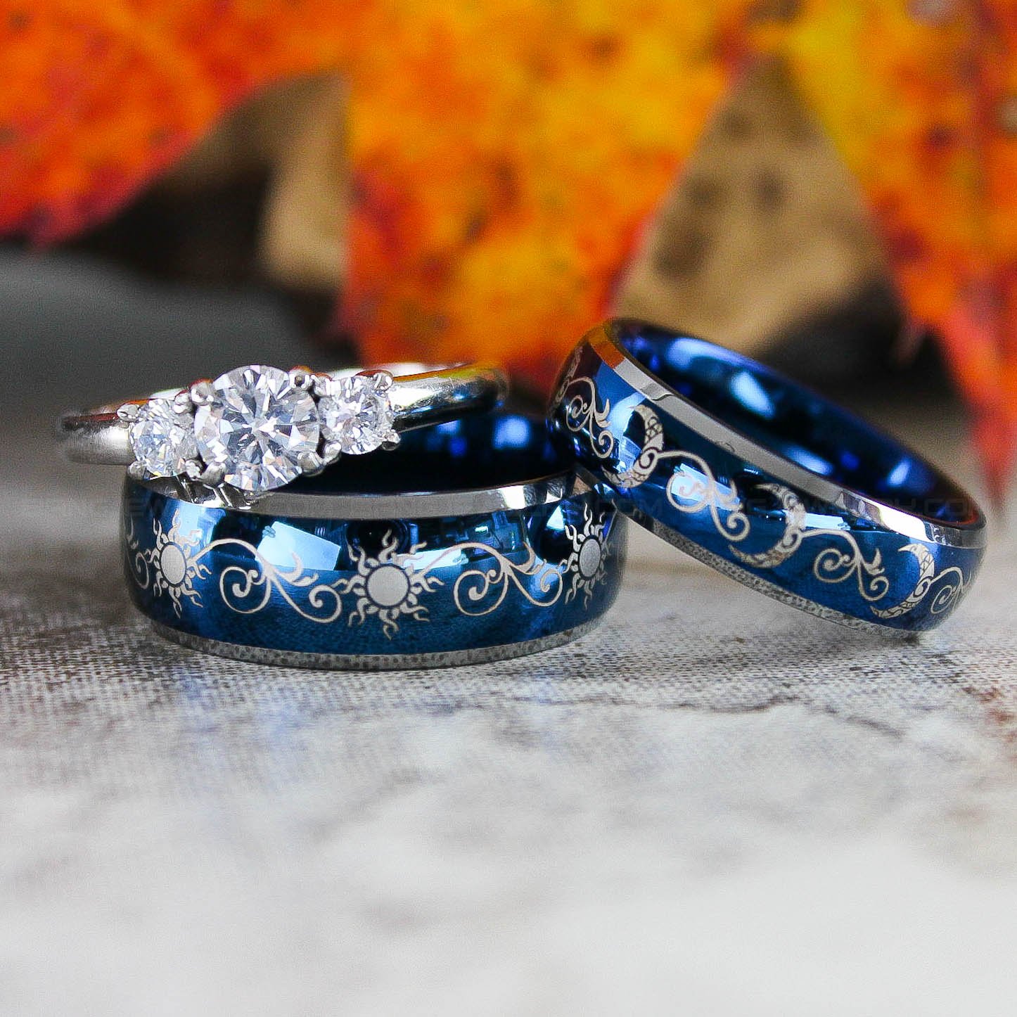 Sun and Moon Rings, Sun and Moon Wedding Bands, Sun and Moon Jewelry, Couple Rings