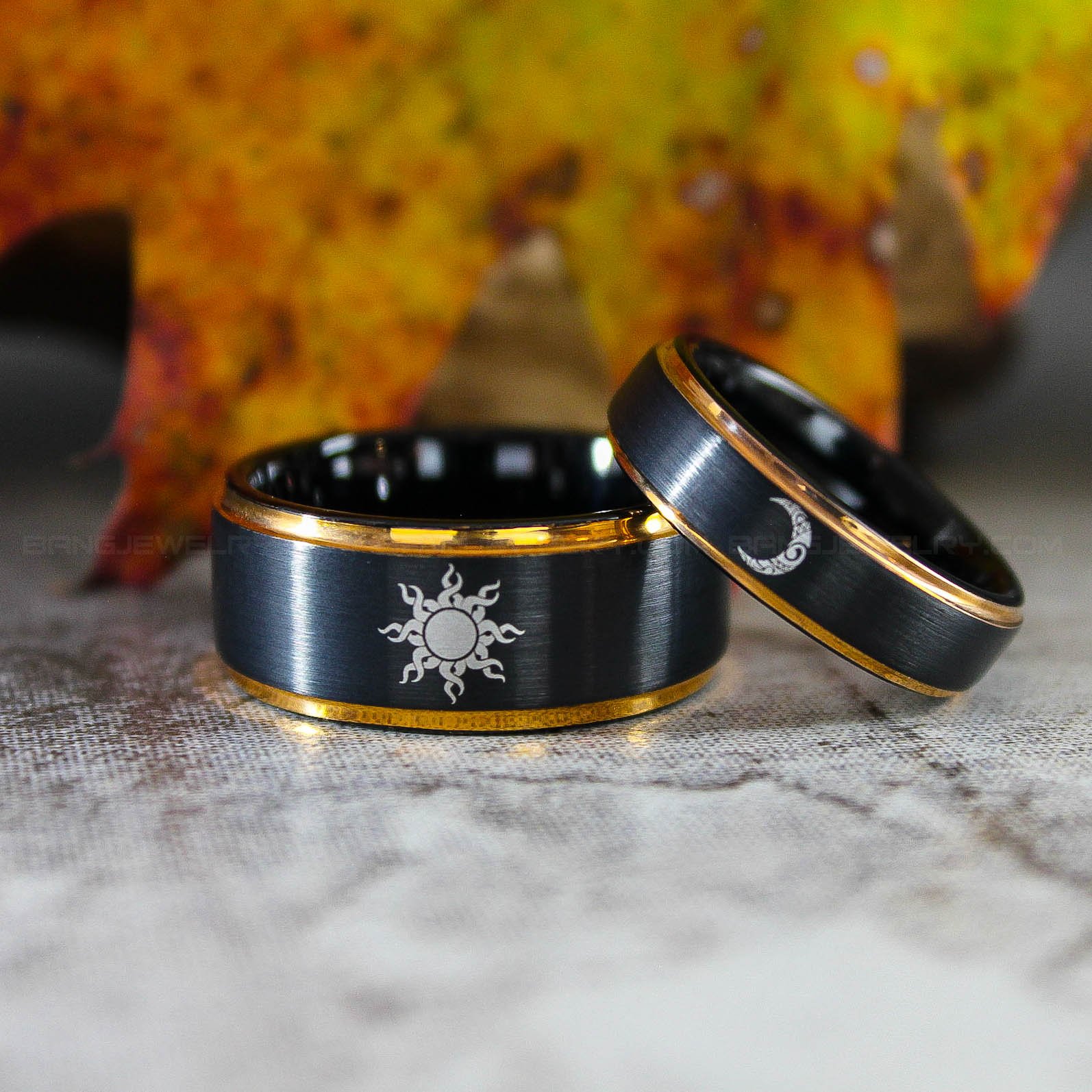 Sun and Moon Rings, Sun and Moon Wedding Bands, Sun and Moon Jewelry, Couple Rings